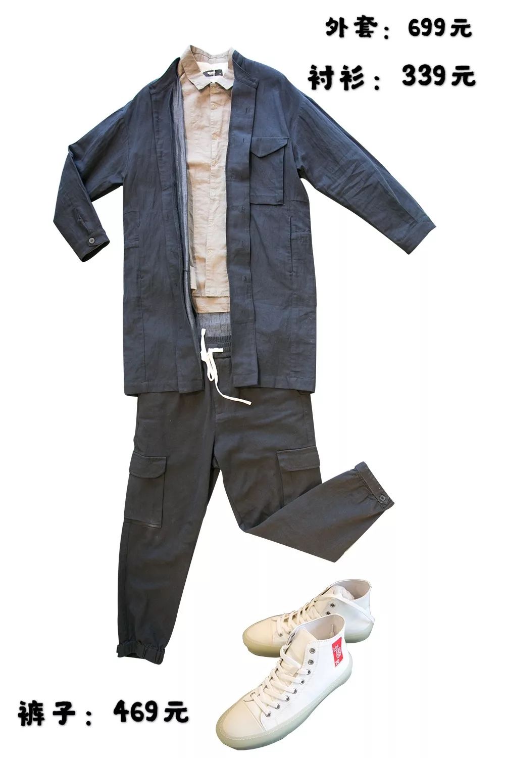 搭配的是棉麻質地的襯衫和(hé)黑色外(wài)套